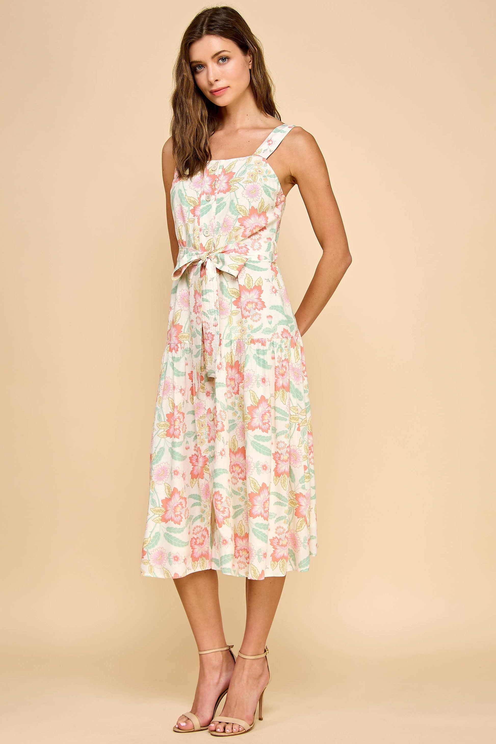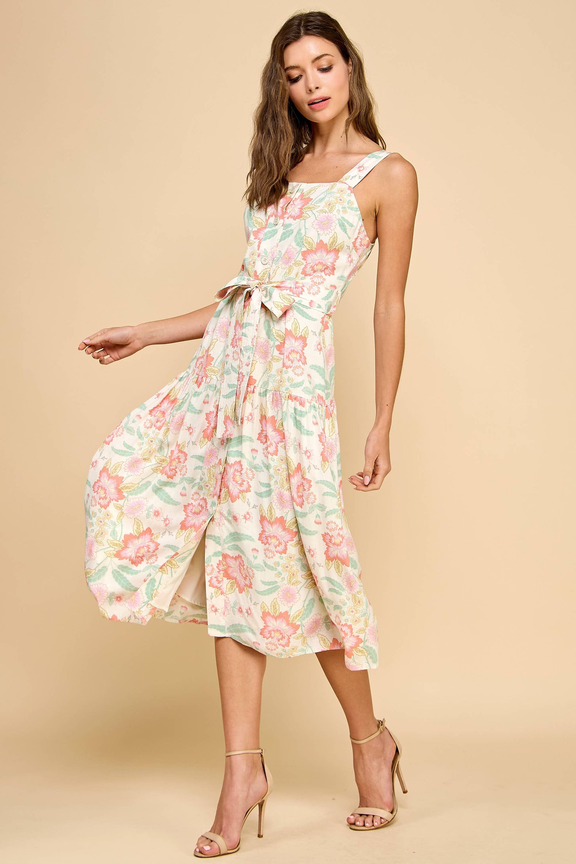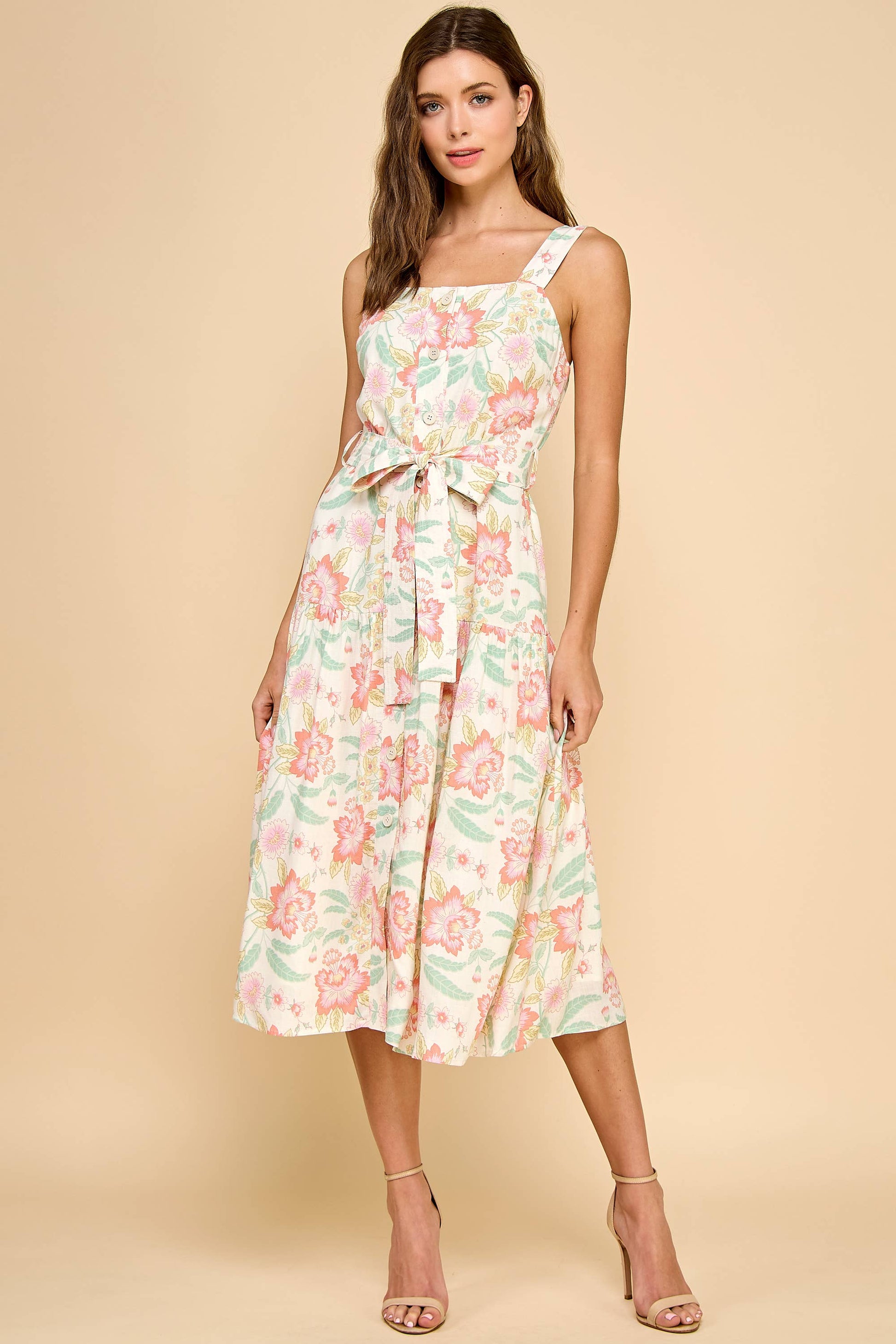 This dress is a soft and feminine midi-length sundress that’s perfect for spring and summer days. It features: