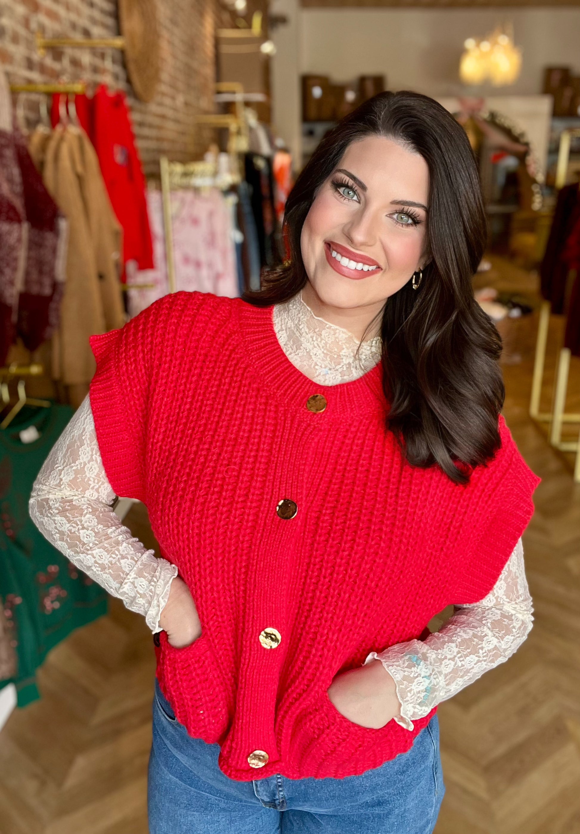 Carley is wearing a medium.